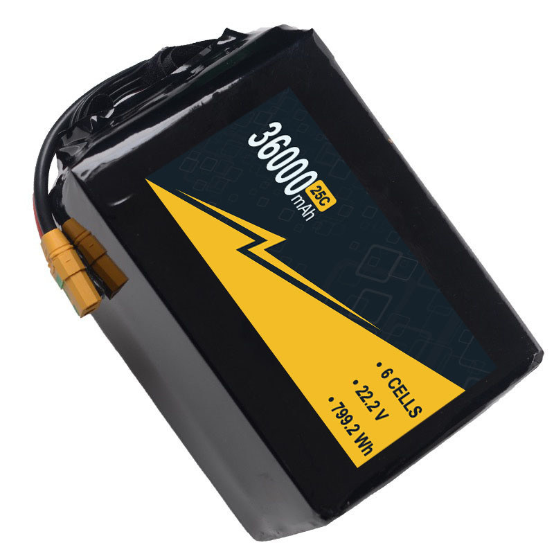 36000mAh 22.2v 6S1P 고전압 농업 UAV 드론 고정 날개 리포 배터리 XT90S