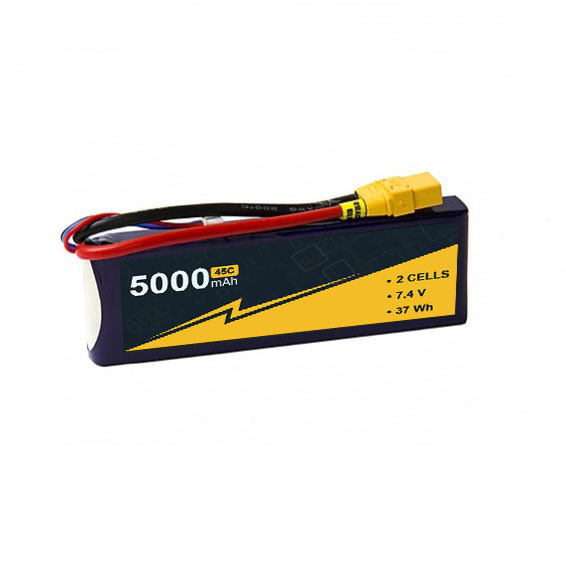 7.4V 45~90C 5000mAh 2S 리포 배터리 RC 항공기 배터리를 위한 w/XT-90