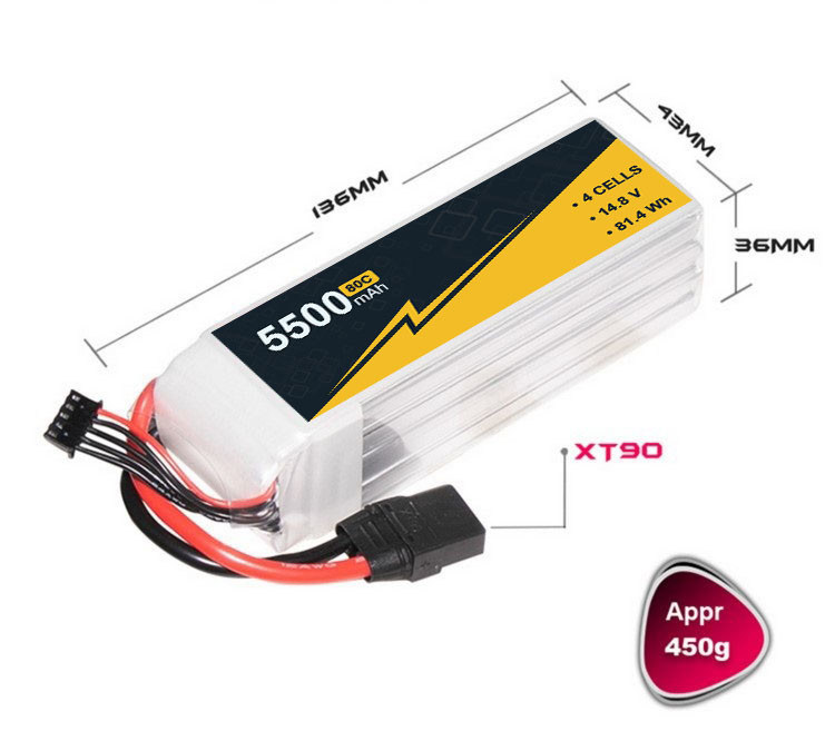 5500mAh 14.8V 4s1P 리포 배터리 80C FPV 리포 배터리